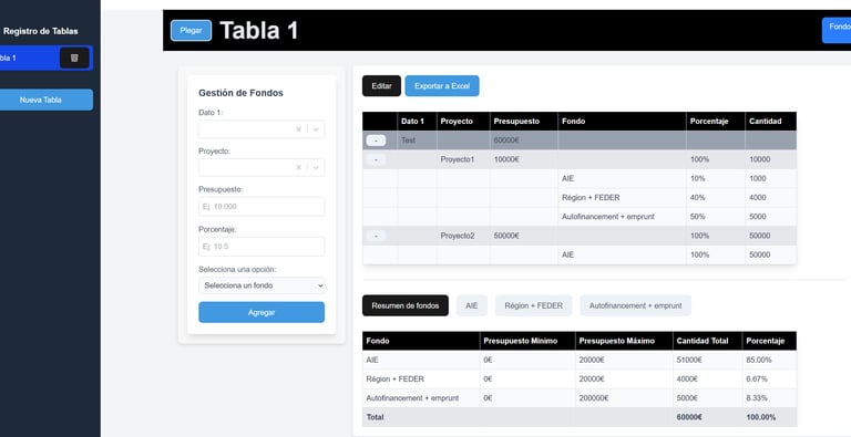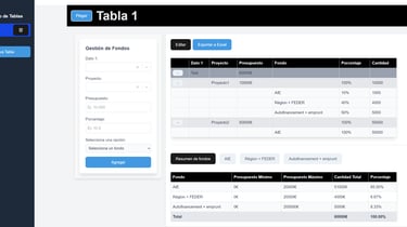 App web para gestionar presupuestos y exportarlos a Excel. Ligada a una base de datos, guarda el resultado de las distribuciones. Desarrollada y personalizada para una entidad.